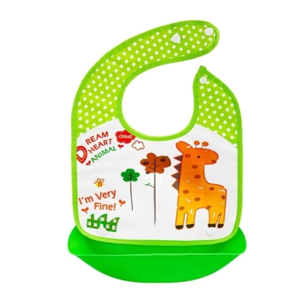Silikonový bryndáček s kapsičkou Žirafa, zelený