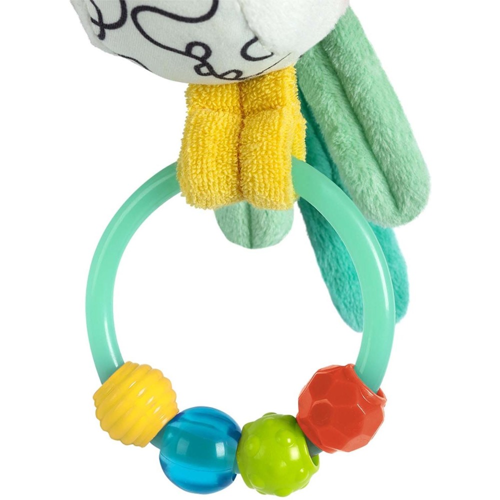 Plyšové chrastítko se spoustou aktivity prvků jako je úchopový kroužek, chrastítko, pískací mechanismus a skřípavý papír. Hračka na uchopení hravě podporuje sluch dítěte, smysl pro zrak, hmat, zdravé uchopení a logické myšlení – ideální jako dáreček pro chlapce a dívky k narození, narozeninám či křtu.