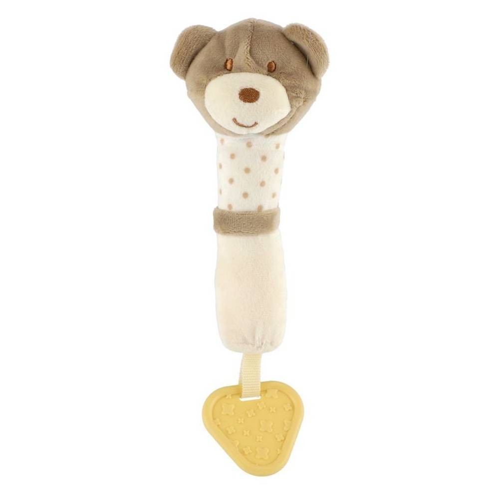 Pískací hračka s kousátkem je určena pro nejmenší děti. Hračka je lehká, dobře se drží, je příjemná na dotek a vydává příjemný zvuk. Různorodá textura použitých materiálů stimuluje rozvoj hmatu dítěte. Disponuje kousátkem z bezpečného materiálu, které pomáhá uklidňovat citlivé dětské dásně při růstu prvních zoubků.