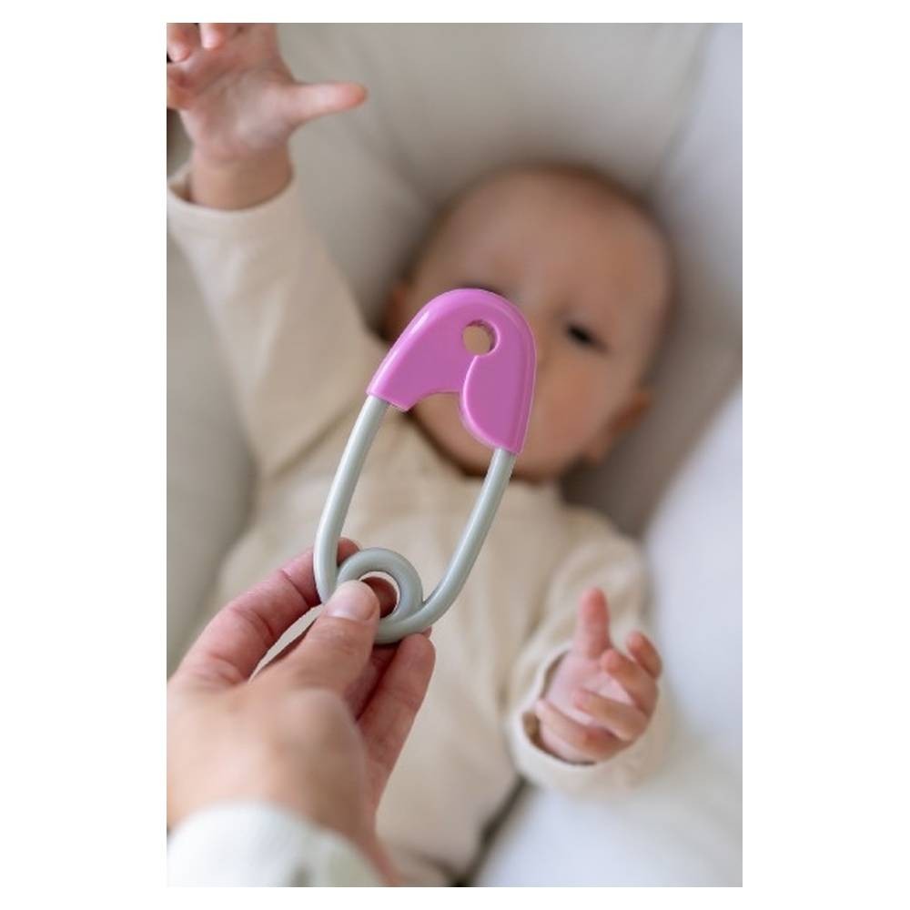 Chrastítko špendlík je klasická dětská hračka, která Vašemu dítěti nesmí chybět. Je ideální pro první pokusy miminka držet hračku. Snadno se uchopí, je velmi lehké a kontrastní provedení miminka jistě zaujme. Podporuje rozvoj jemné dětské motoriky a smyslového vnímání. Díky malým kuličkám uvnitř jemně chrastí.