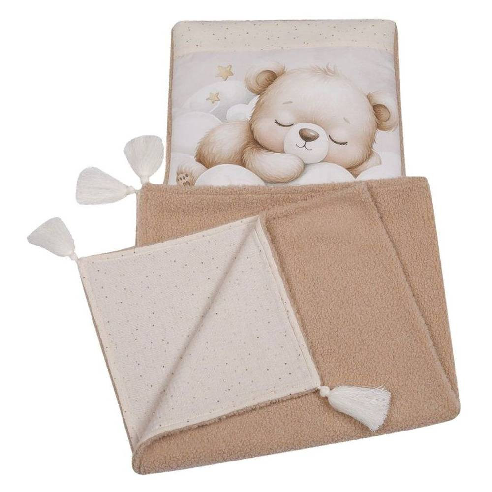 DuetBaby Dětská deka s polštářem bouclé s mušelínovým potiskem-béžová