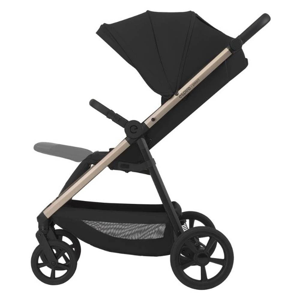 Pohodlí rodičů je stejně důležité – Espiro Pearl nabízí snadné skládání one-hand, 3polohovou nastavitelnou rukojeť pro pohodlné vedení a brzdu stop & go pro bezpečné brzdění. Vynikající odpružení a kola s EVA pěnou a originálním vzorkem zaručují tichý a plynulý pohyb po všech typech povrchů. Praktické detaily, jako je 360° otočné madlo, odnímatelný držák na nápoje a objemný koš se snadným přístupem, usnadní každý výlet.