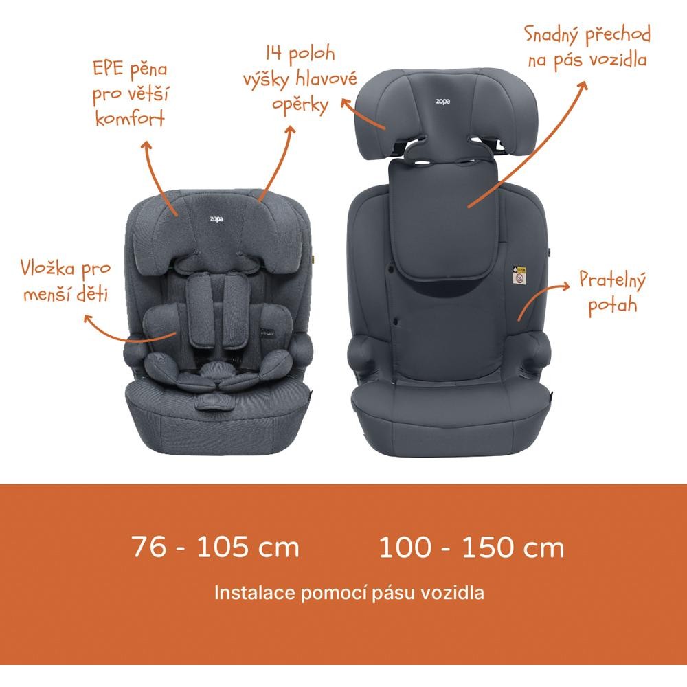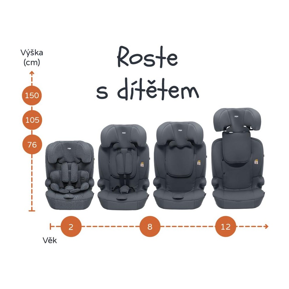 Zopa Alfa R129 je praktická a spolehlivá autosedačka, která poroste s vaším dítětem od batolecího věku až do 12 let. Je určena pro děti s výškou od 76 do 150 cm a splňuje přísnou bezpečnostní normu ECE R129 (i-Size). Díky instalaci pomocí tříbodového bezpečnostního pásu vozidla je autosedačka vhodná do každého auta, bez ohledu na to, zda je vybaveno systémem Isofix, což z ní dělá univerzální řešení pro celou rodinu.