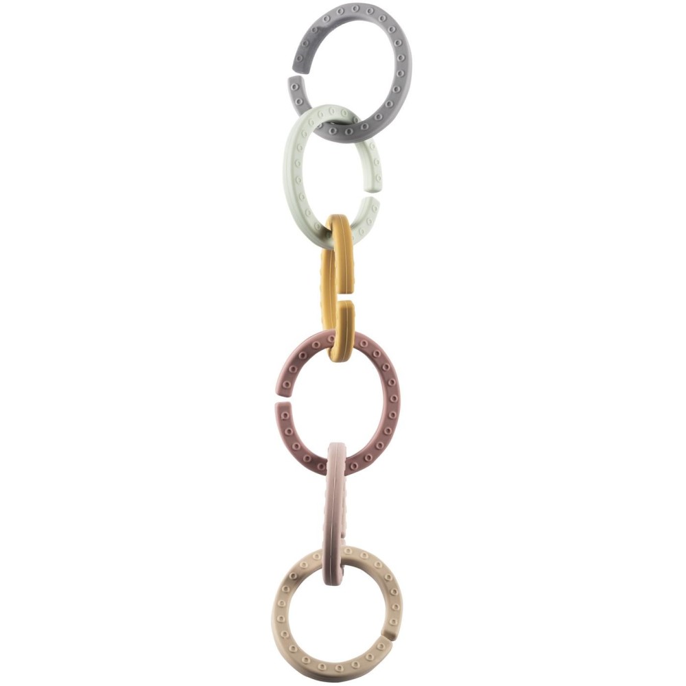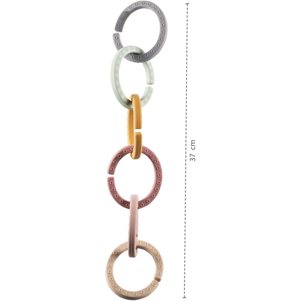 Svrchní část řetězu je vyrobena z bezpečného potravinářského silikonu, který je netoxický a odolný proti rozbití. Pro malé děti je silikon přirozenější než plast či kov.