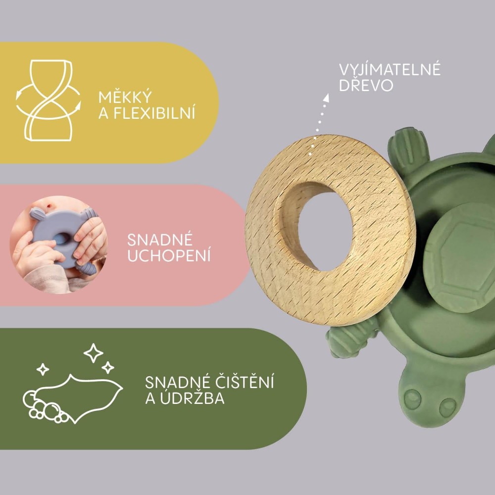 ZOPA Silikonové dřevěné kousátko Turtle, Forest Green Forest Green
