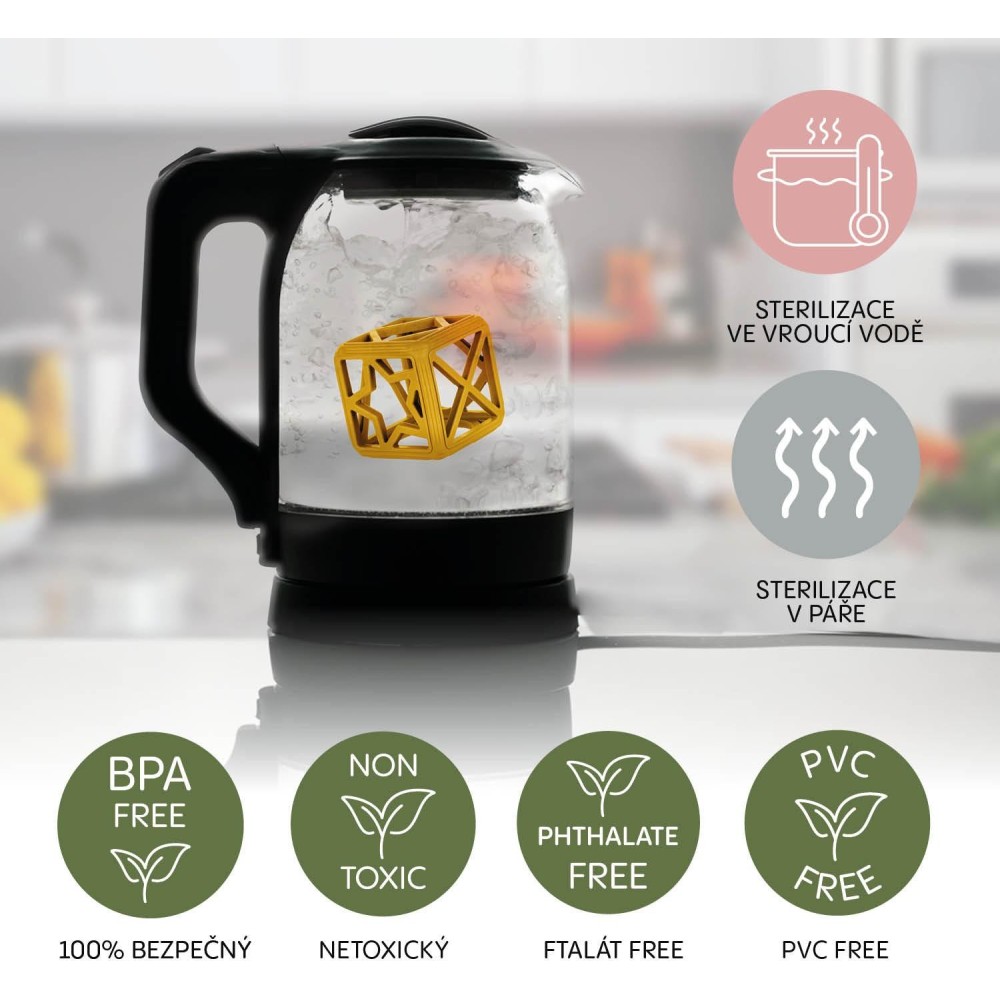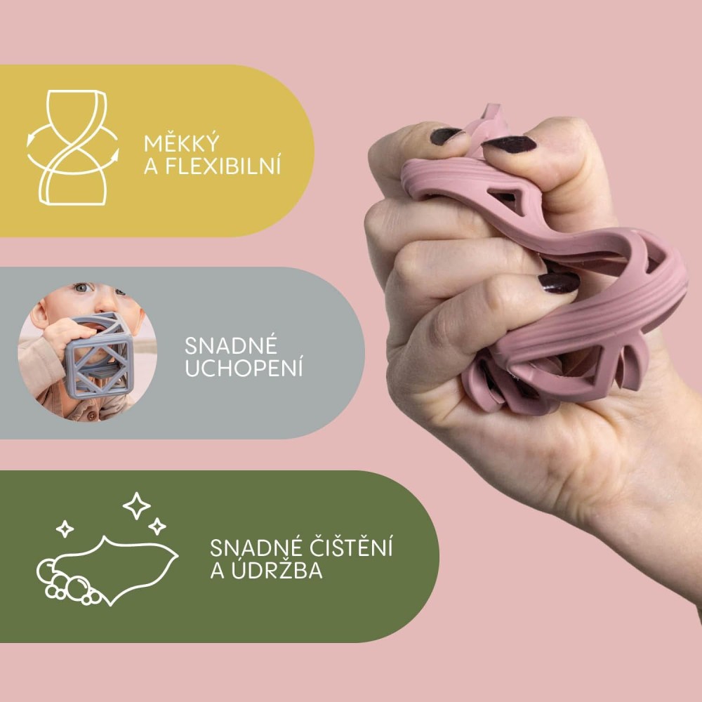 Pomozte svému miminku překonat náročné období prořezávání zoubků se silikonovým kousátkem Square. Jeho jedinečný geometrický tvar skvěle padne do malých ručiček a nabízí účinnou masáž dásní, která zmírňuje nepříjemné pocity při prořezávání zoubků.