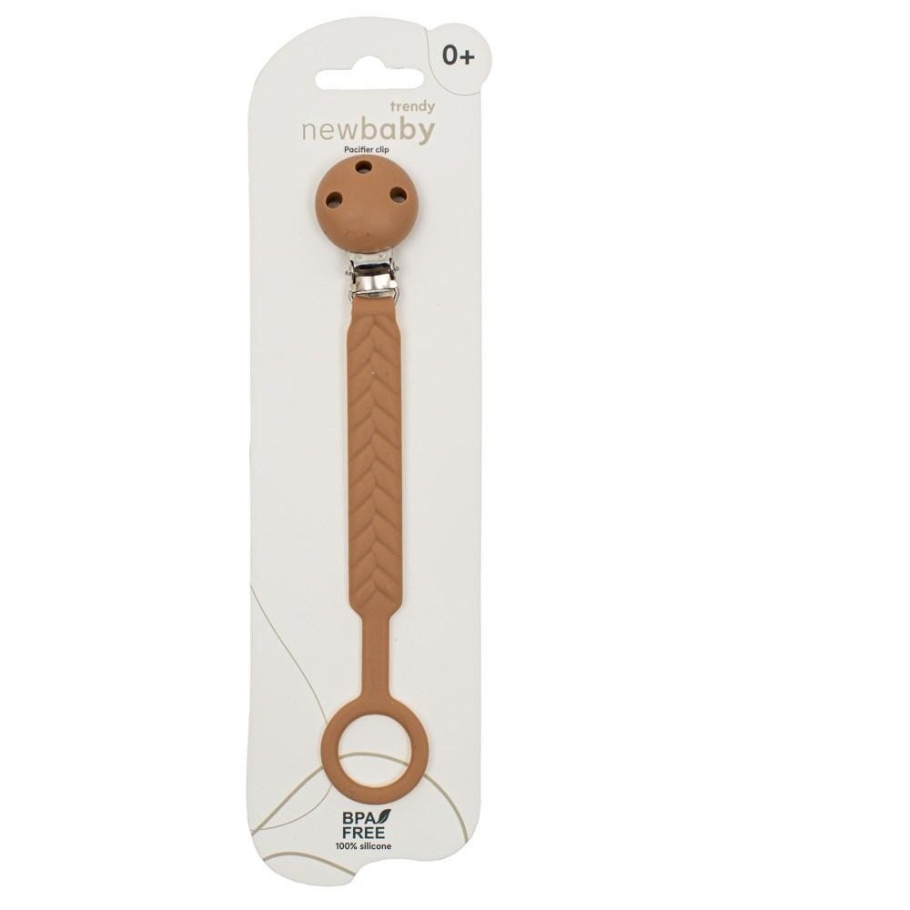 Silikonový klip na dudlík New Baby hnědý