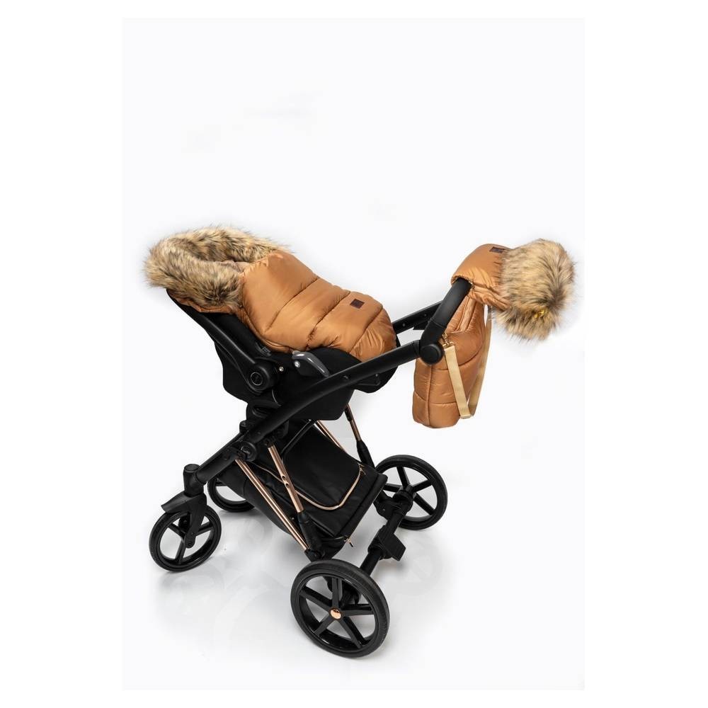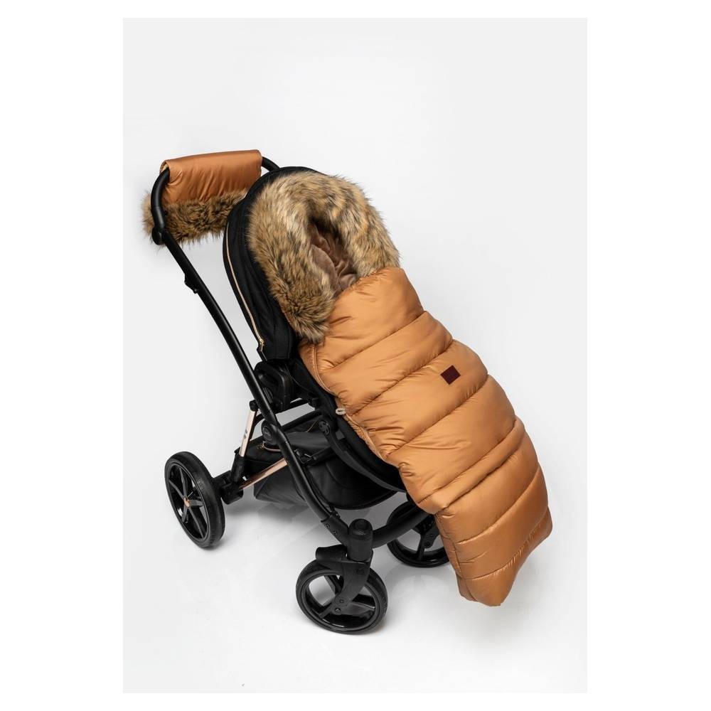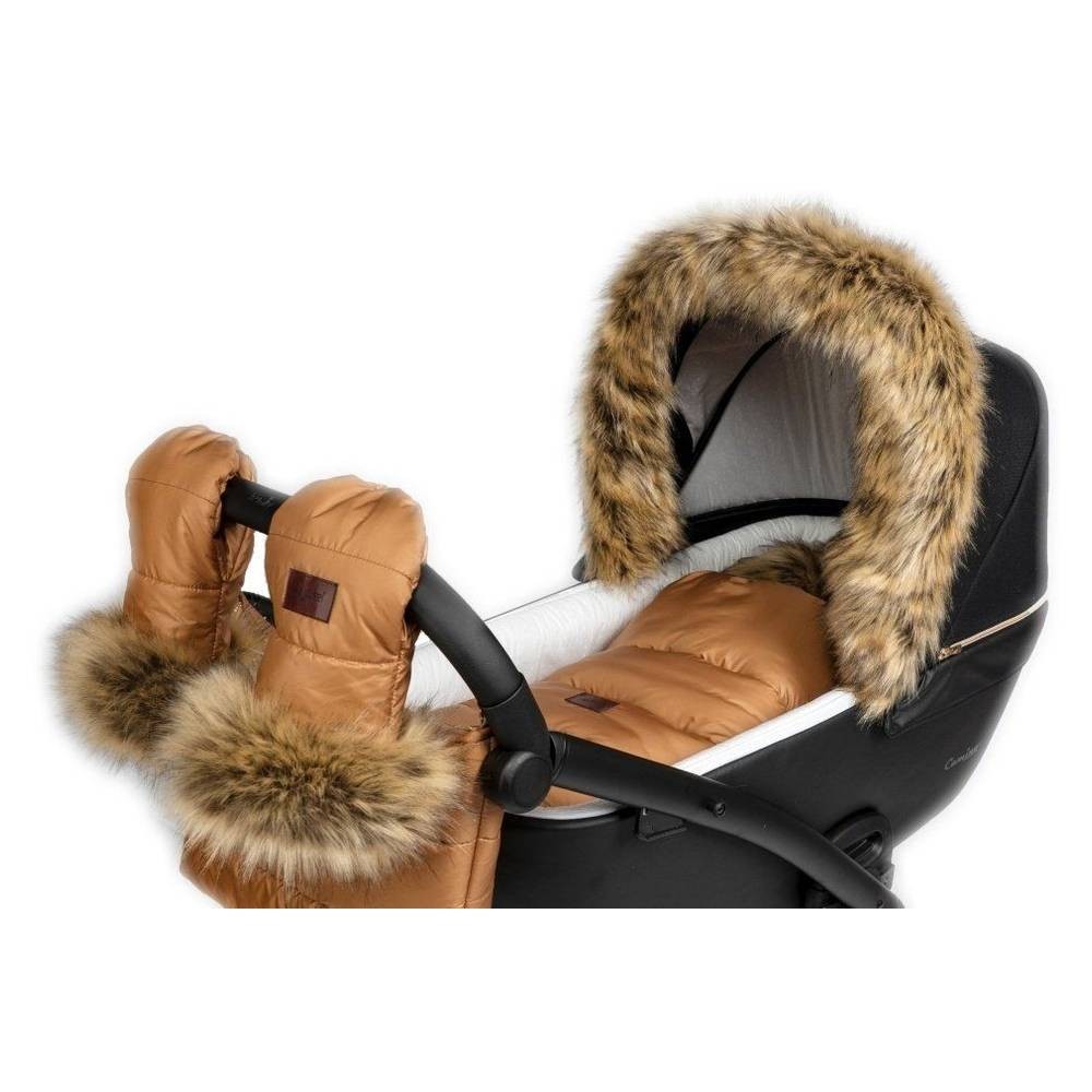 Zimní fusak s kožíškem v karamelové barvě od Jasmine. Originální, hřejivý fusak s možností stylingu s dalšími doplňky na kočárek.