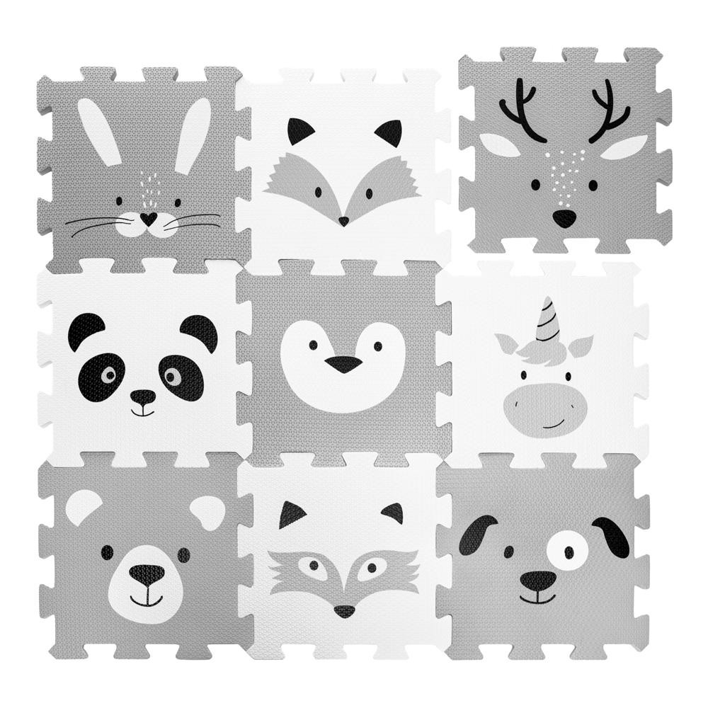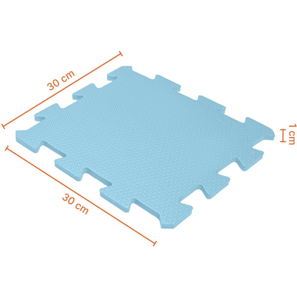 Jednotlivé dlaždice 30 × 30 cm (9 ks) na sebe perfektně navazují. Podložka je vhodná pro děti od narození, vyrobená z nezávadného a příjemného materiálu.