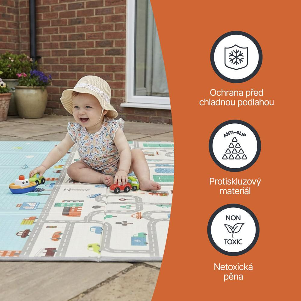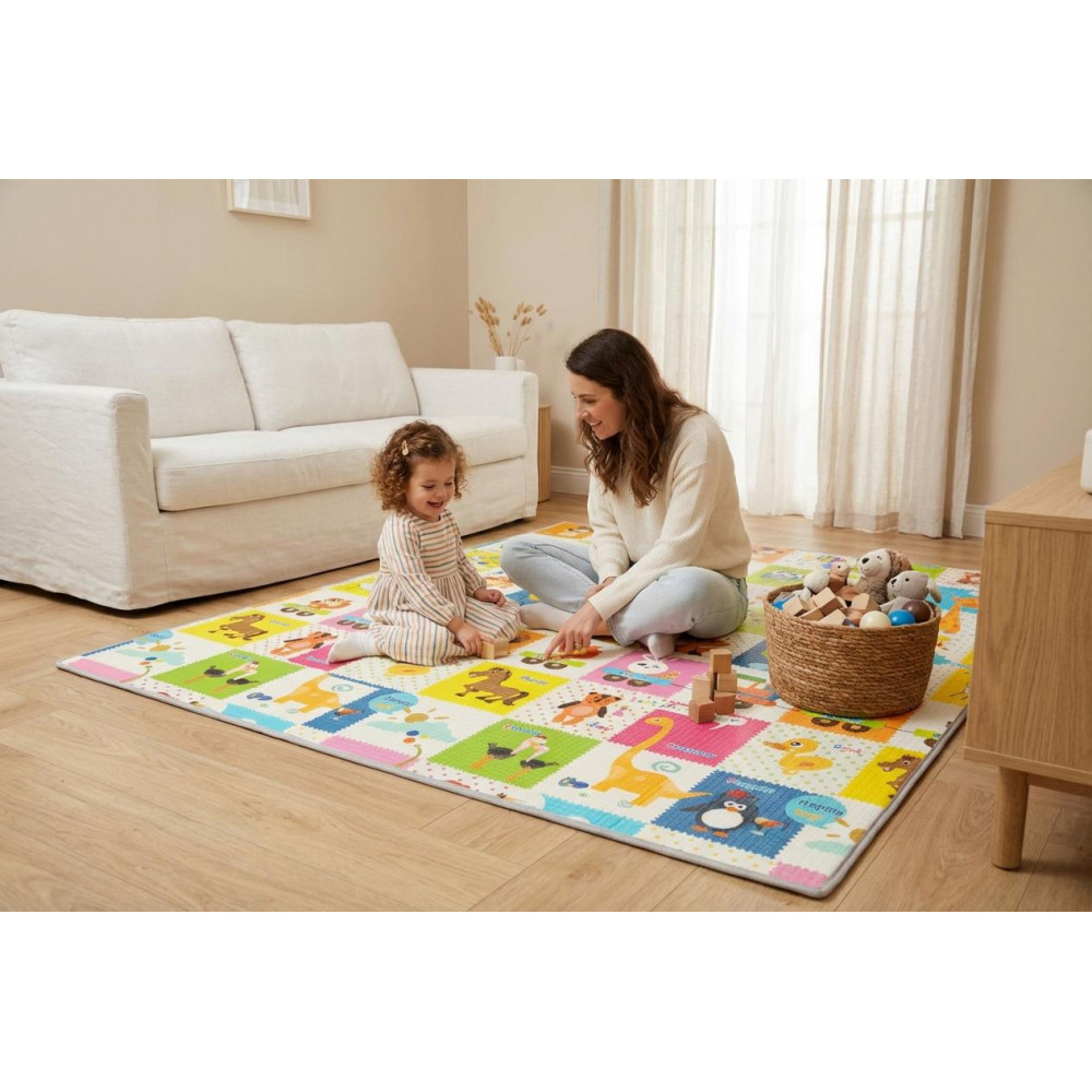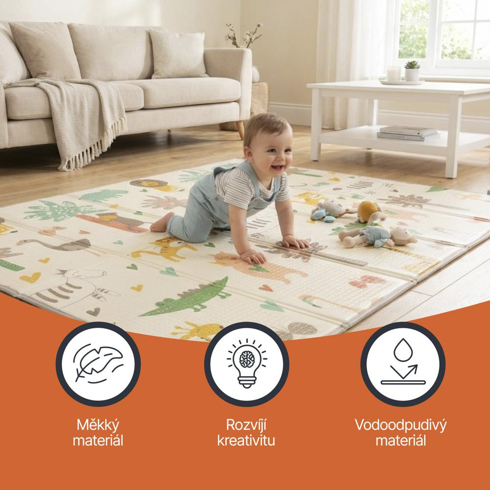 Měkká, ale zároveň dostatečně pevná pěna chrání dítě před tvrdou podlahou a tlumí nárazy při pádech. Podložka vytváří ideální prostor pro lezení, hraní i odpočinek.