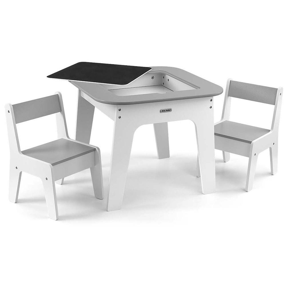 Sada Olaf se vyznačuje jedinečnou deskou – jedna strana vnitřní desky je bílá, zatímco druhá strana je hladká a natřená tabulovou barvou, což je ideální pro kreslení, psaní nebo jiné výtvarné aktivity. Deska je vyjímatelná a pod ní se nachází prostorný úložný prostor, který usnadňuje ukládání hraček, kostek nebo výtvarných potřeb, díky čemuž je udržování pořádku jednodušší.