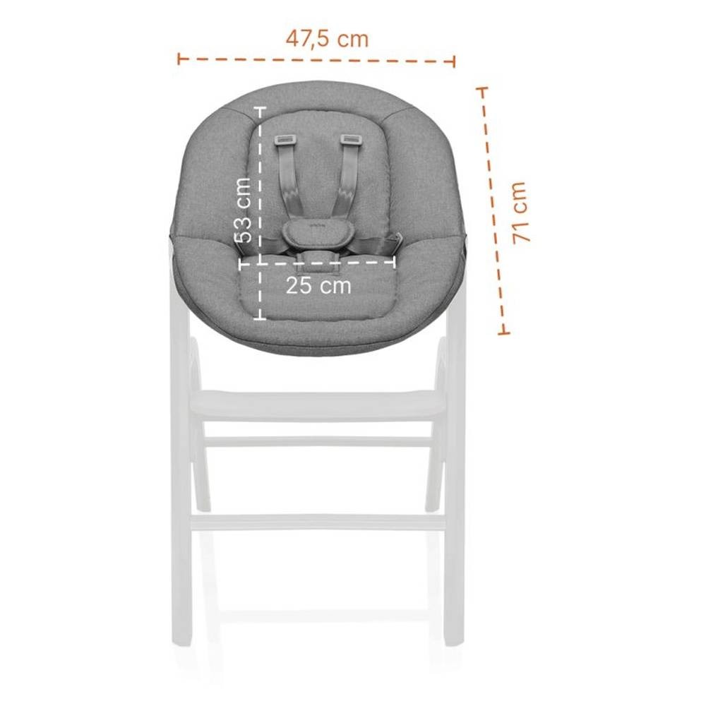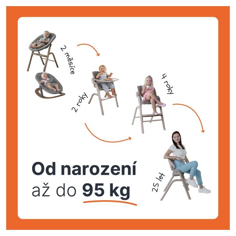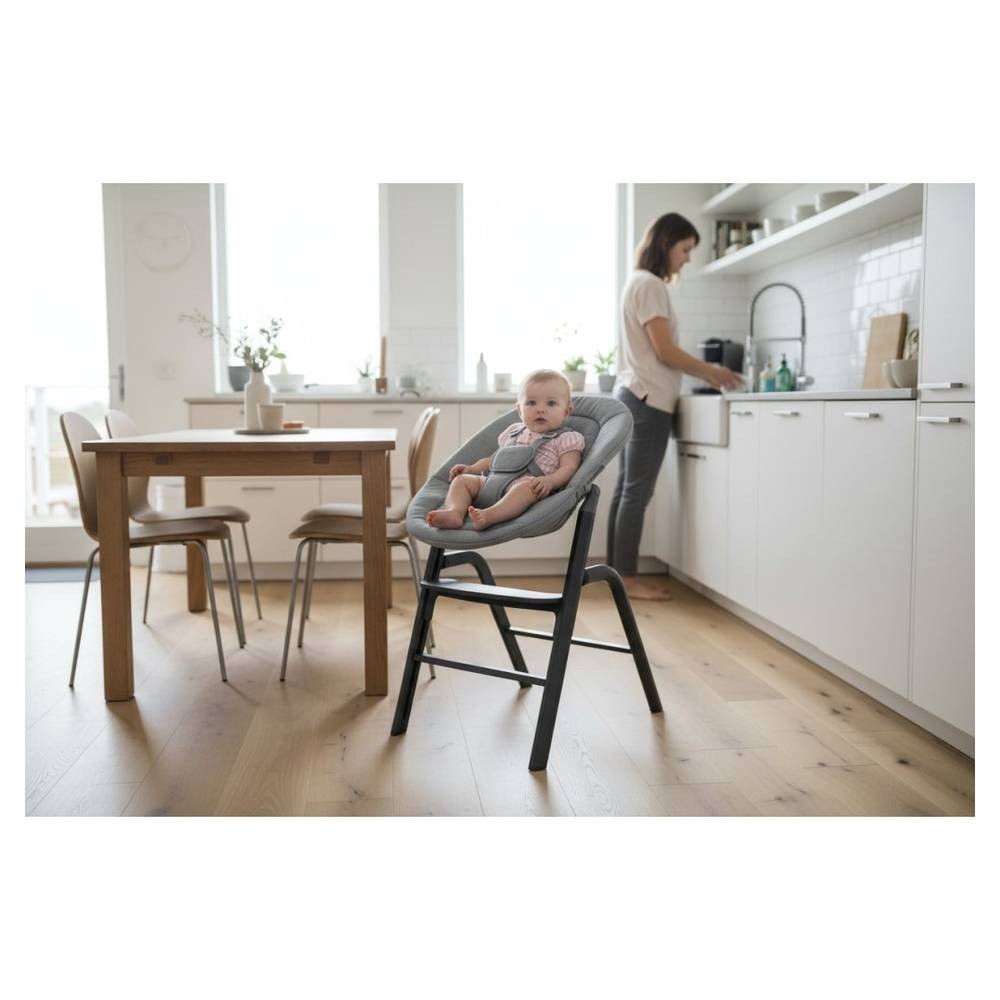 Novorozenecký set je skvělým pomocníkem v období, kdy miminko ještě nesedí samo, ale rádo pozoruje dění kolem sebe. Umožňuje vám zapojit dítě do každodenních aktivit – bezpečně, pohodlně a na úrovni jídelního stolu. (Při použití na židličce INSPIRA.)