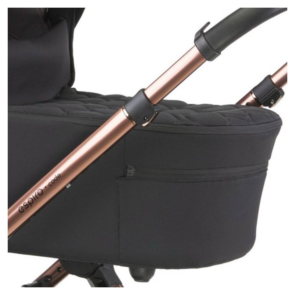 Espiro Code je navržen jako komplexní řešení od narození až po batolecí věk. Kombinuje hlubokou korbu pro novorozence a sportovní sedačku pro starší děti, čímž zajišťuje maximální flexibilitu. Prostorná korba poskytuje miminku dostatek místa a pohodlí a její nacvaknutí a vycvaknutí z podvozku je intuitivní a snadné – stačí jediné cvaknutí do stříšky. Praktická je i možnost složení korby naplocho pro snadný transport a skladování. Trojitá ventilace korby pak zajišťuje optimální cirkulaci vzduchu a tepelný komfort pro vaše miminko.