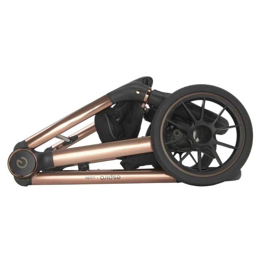 Jednou z největších předností kočárku Espiro Code je jeho automatické skládání. Díky systému „move & fold“ se podvozek složí téměř sám pouhým pohybem, a to včetně sportovní sedačky. Tato funkce ušetří rodičům drahocenný čas a zjednoduší manipulaci s kočárkem. Espiro Code se nezalekne žádného terénu. Kvalitní odpružení a stabilizátor vibrací korby zajistí plynulou jízdu i po nerovném povrchu. Bezúdržbová gelová kola z EVA materiálu s gumovým pláštěm poskytují dobrou přilnavost a inteligentní brzda šetří vaše boty. Kočárek je navíc vybaven prostorným nákupním košem s extra velkou taškou a uzamykatelnou kapsou pro uložení všech potřebných věcí..