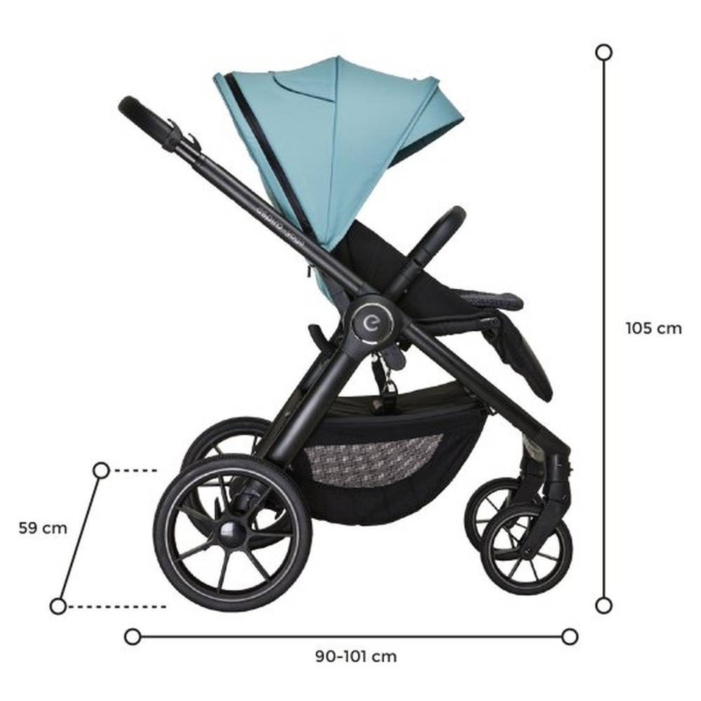 Jakmile dítě vyroste z korby, sportovní sedačka nabídne dostatek pohodlí a flexibility. Lze ji nastavit do tří poloh – sedu, polosedu a lehu, což umožňuje dítěti během jízdy odpočívat nebo objevovat okolní svět. Sedačka je vybavena pětibodovými bezpečnostními pásy a rozšiřitelnou stříškou s dvojitou ventilací. Čtyřnásobné odpružení chrání dítě před otřesy, a tím zvyšuje komfort i při jízdě po nerovném povrchu.