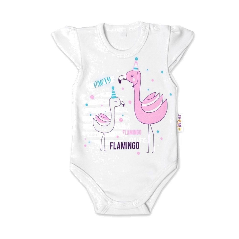 Baby Nellys Bavlněné kojenecké body, kr. rukáv, Flamingo - bílé