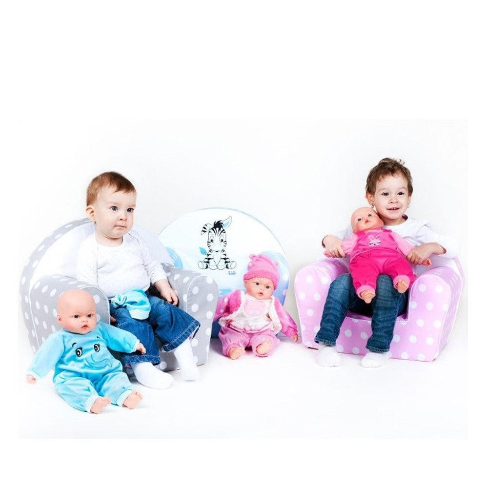 Dětské křesílko New Baby Zebra je skvělým a velmi oblíbeným doplňkem do dětského pokojíčku. Toto křeslo pro nejmenší děti je vyrobeno z měkkého materiálu a má snímatelný bavlněný potah, který lze prát. Potah má velmi příjemné barvy s potiskem puntíků a zdobí ho obrázek roztomilé zebry. Rozměry: vxš: cca 42x53 cm, výška opěradla cca 29 cm, šířka sedadla cca 25 cm. Složení: potah 100% bavlna, vnitřní materiál: polyuretánová pěna.