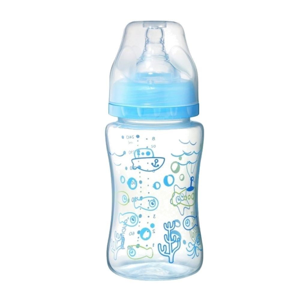 Lahvička pro miminko, antikoloková se širokým hrdlem BabyOno - modrá