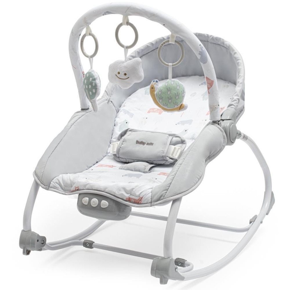 Dětské multifunkční lehátko Baby Mix poslouží vašemu dítěti od narození až do dosažení hmotnosti 18 kg. Pro úplně malá miminka jej lze použít jako houpací lehátko s melodií, světlem a vibrací. Jakmile vaše dítě vyroste, můžete toto lehátko změnit na křesílko. Lze jej aretovat i do pevné polohy vhodné na příklad ke krmení. Je vybaveno odnímatelnou hrazdou se třemi hračkami, nastavitelnou opěrkou zad a vibračním a zvukovým a světelným modulem, který zpříjemní chvíle vašemu dítěti.