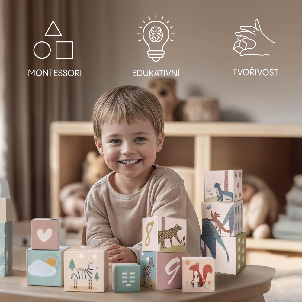 Díky jednoduchému, ale chytrému designu jsou kostky vhodné pro děti již od 2 let. Dítě si může samo nebo s rodičem stavět věže, rozpoznávat zvířátka, učit se barvy a čísla nebo si vymýšlet vlastní hry. Kostky slouží jak k učení, tak k zábavě – a přesně to je kombinace, kterou moderní rodiče hledají.