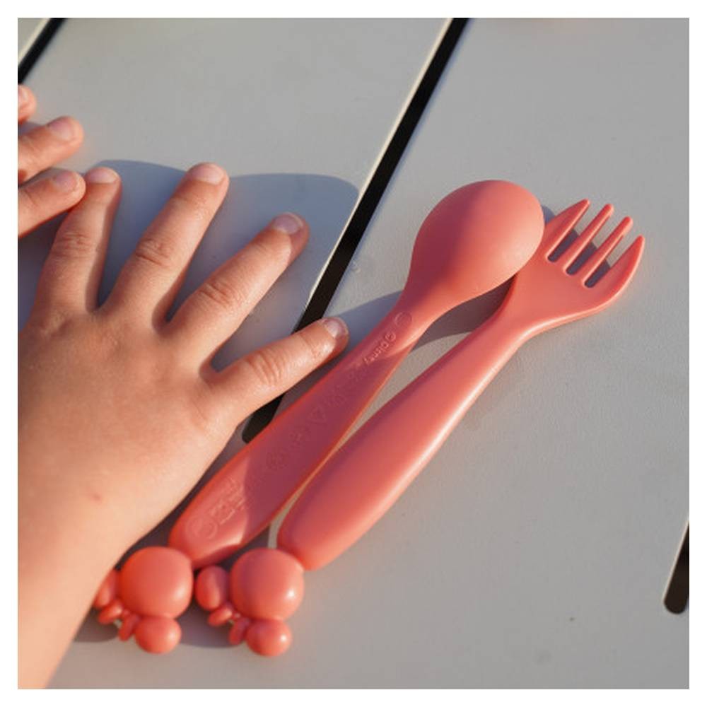 Příbory byly speciálně navrženy pro potřeby malých dětí – díky zaobleným okrajům si dítě neublíží a může se snadno naučit jíst samo.