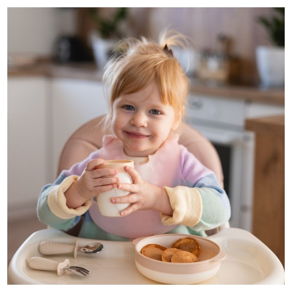 ergonomickými držátky, misku s přísavkou, sadu 2 lžiček a kousátko na ovoce. Každý kus je navržen pro snadnou manipulaci malými ručičkami a je vyroben z...