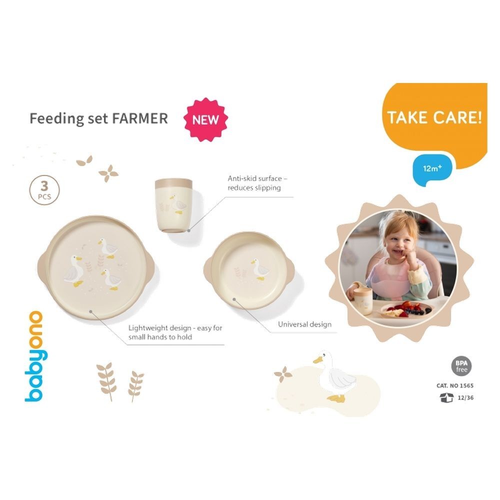 BabyOno, 3 dílná sada nadobí, 12m+, barva: béžová