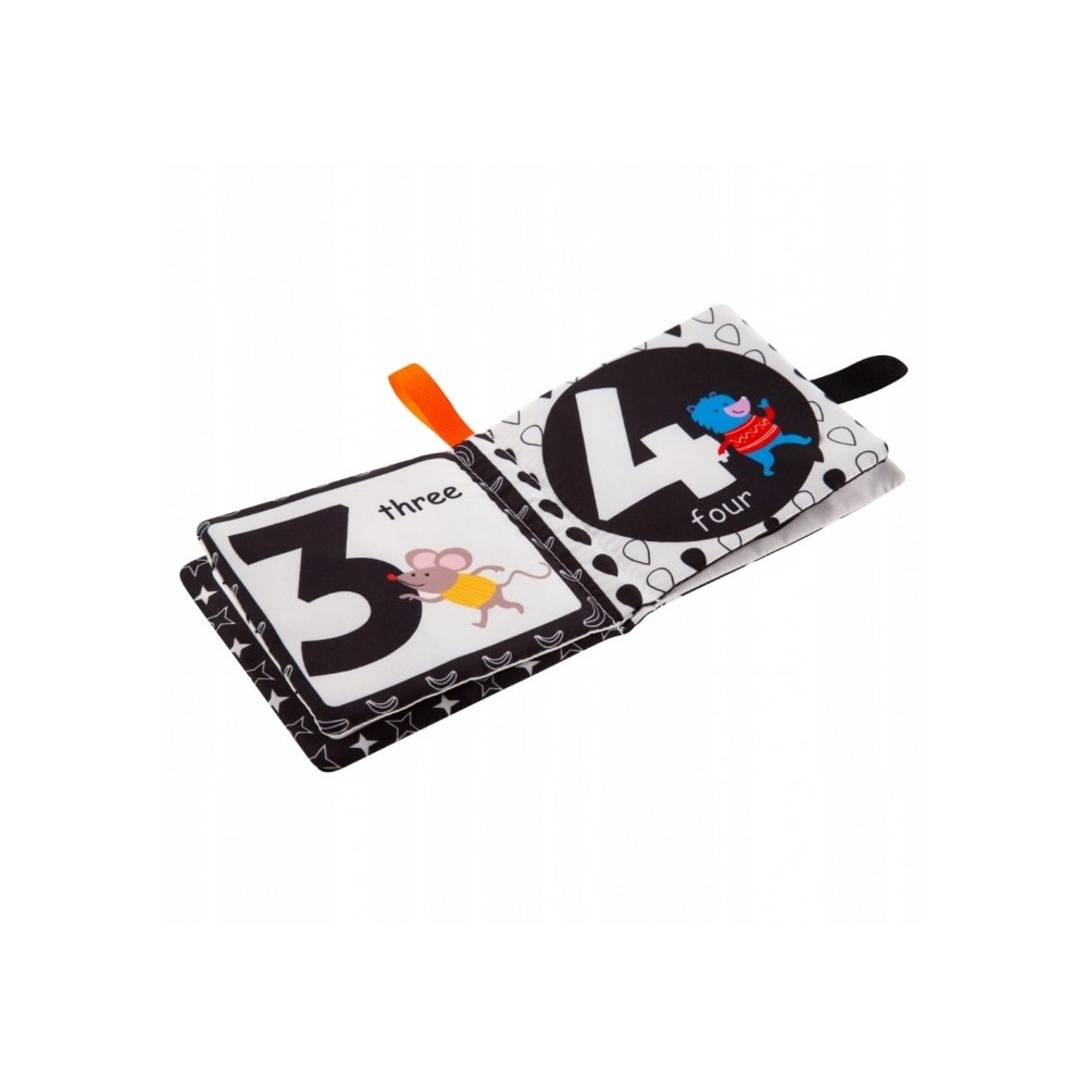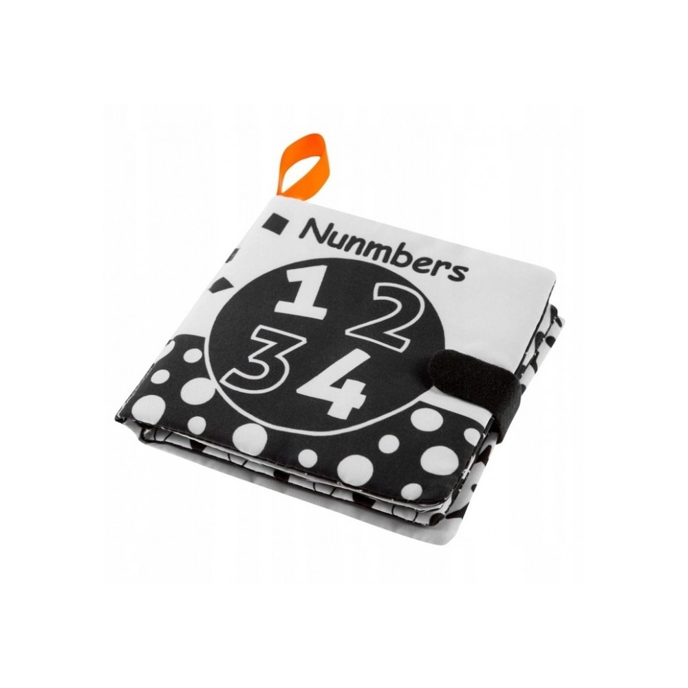 Měkká kontrastní knížka z měkkého, na dotek příjemného materiálu, v kontrastních barvách, šustí.