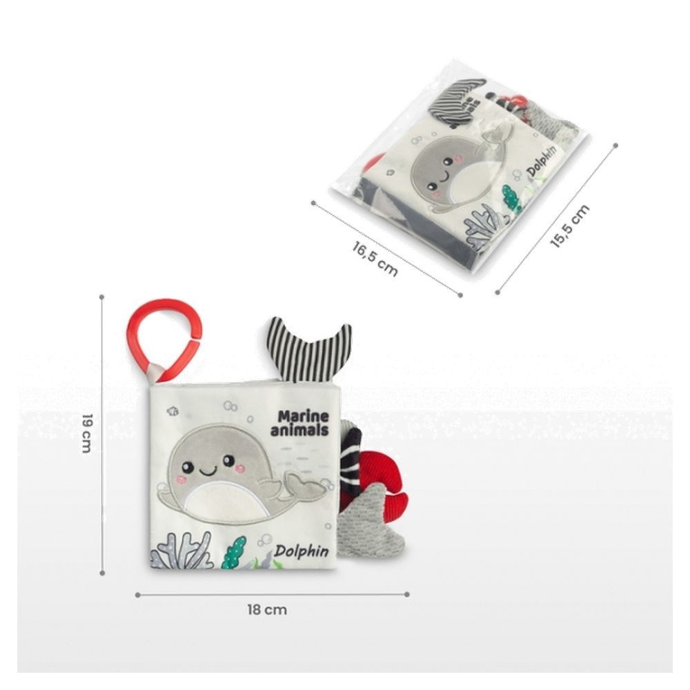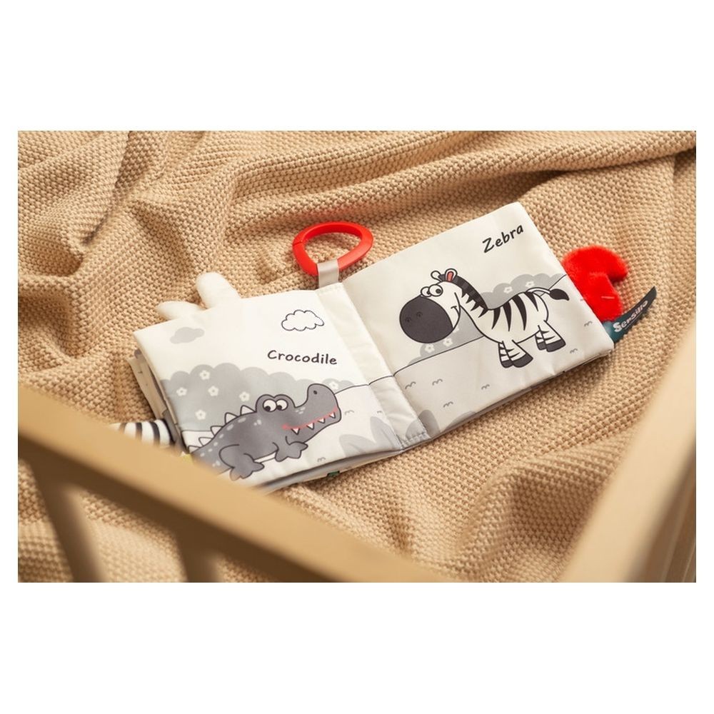 Pískací knížka SENSORY TOYS s obrázky. Podporuje rozvoj smyslů dítěte. Bezpečná, snadno udržovatelná, splňuje normy.