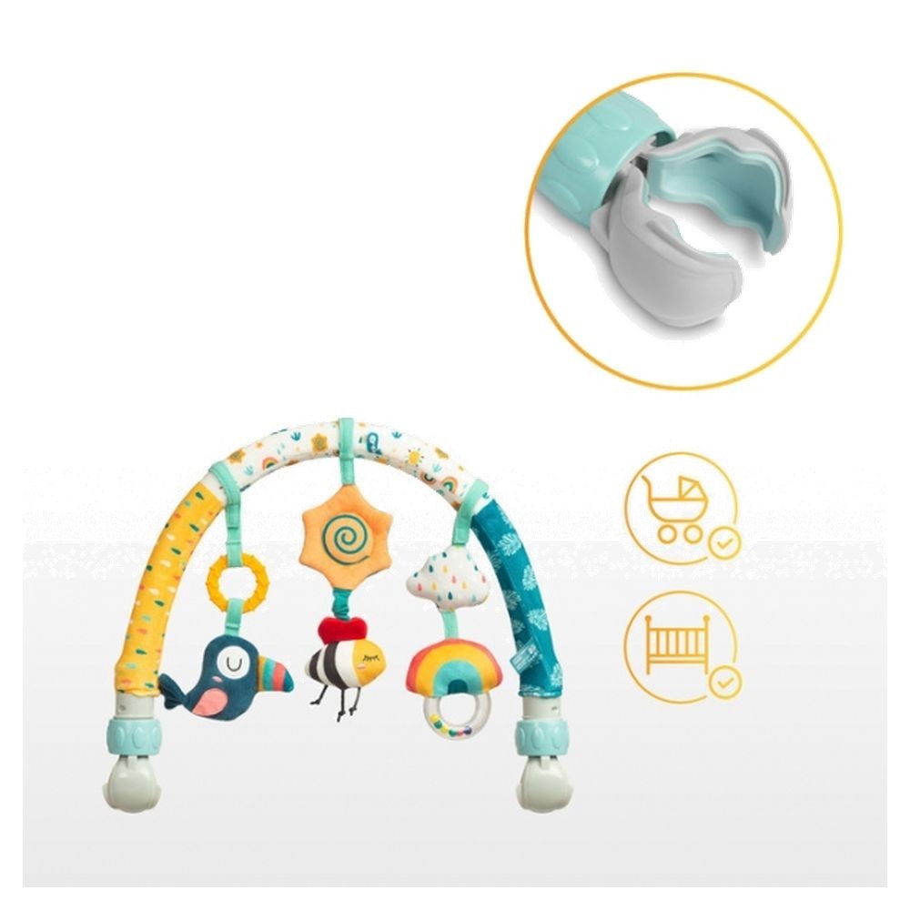 S univerzálním systémem uchycení můžete hrazdičku snadno připevnit na postýlku, kočárek nebo autosedačku, což znamená, že vaše děťátko bude mít oblíbenou hračku vždy po ruce, doma i na cestách.