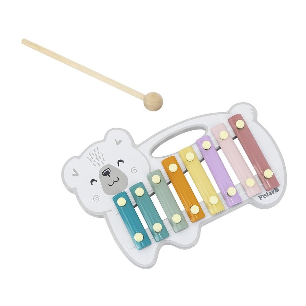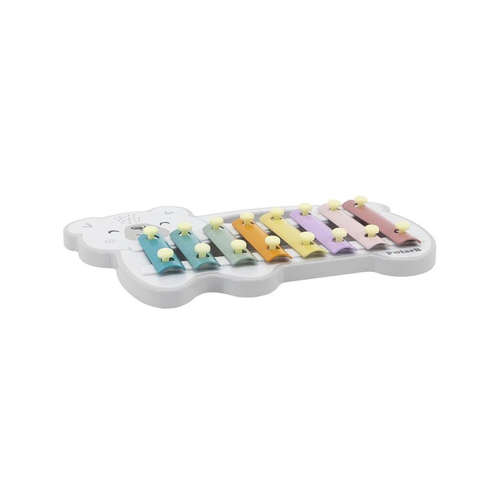 Medvídek zve všechny děti na lekci hudby! Stačí jen lehce poklepat na kovové destičky, aby se ozvaly krásné zvuky zvonků.