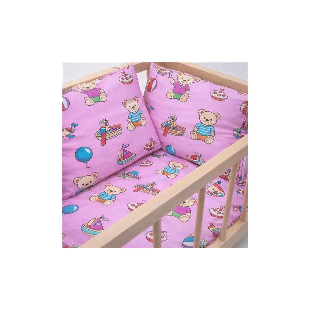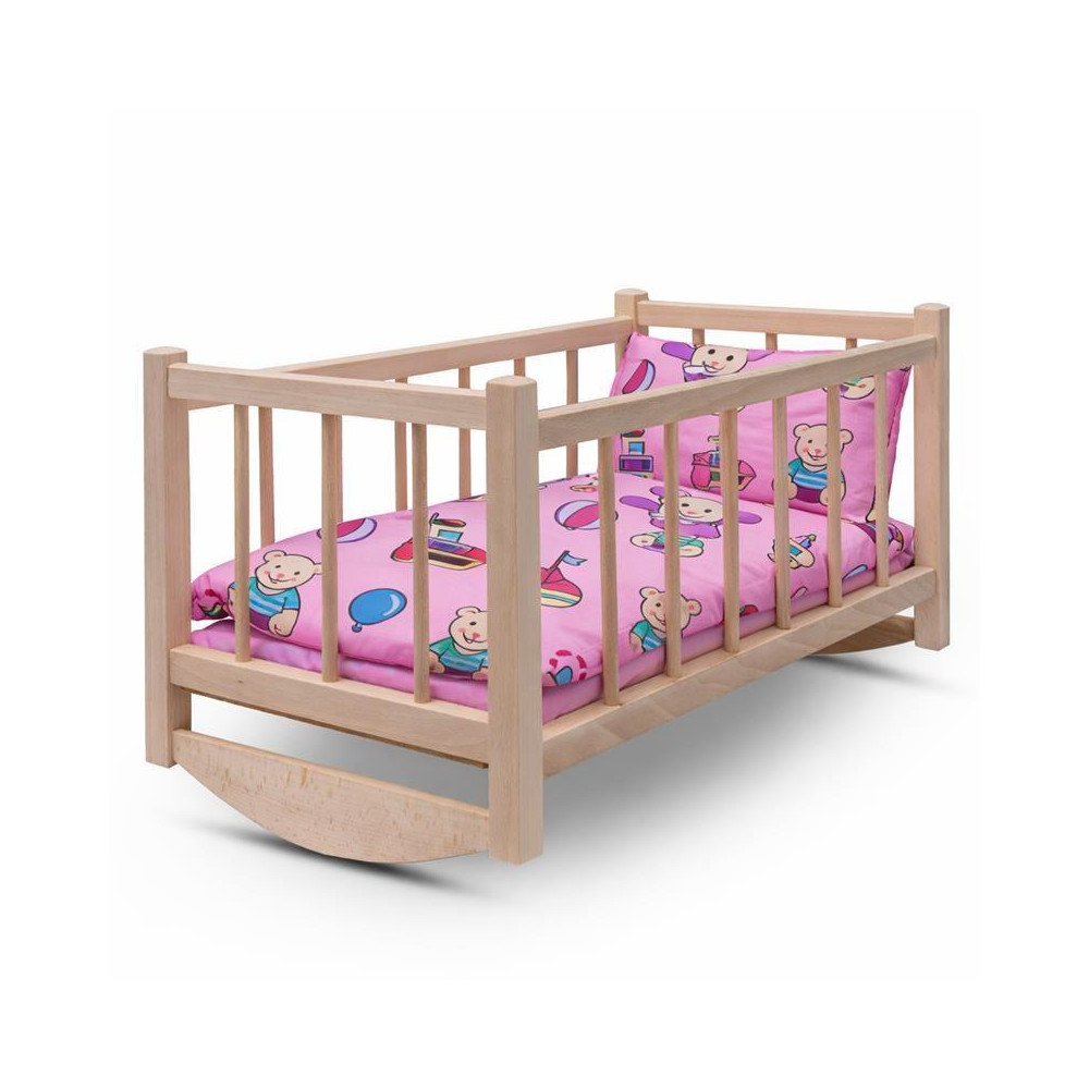 Dřevěná postýlka-kolébka pro panenky s povlečením Baby Mix bears