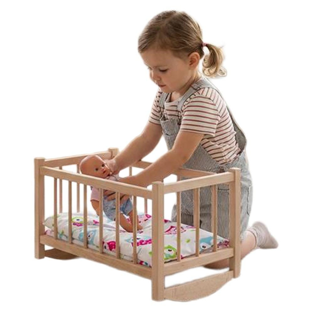 Dopřejte dětem kousek skutečného kouzla s touto nádhernou dřevěnou kolébkou pro panenky, doplněnou o povlečení i matraci. Je to perfektní přírůstek do dětského pokojíčku nebo herního domečku.