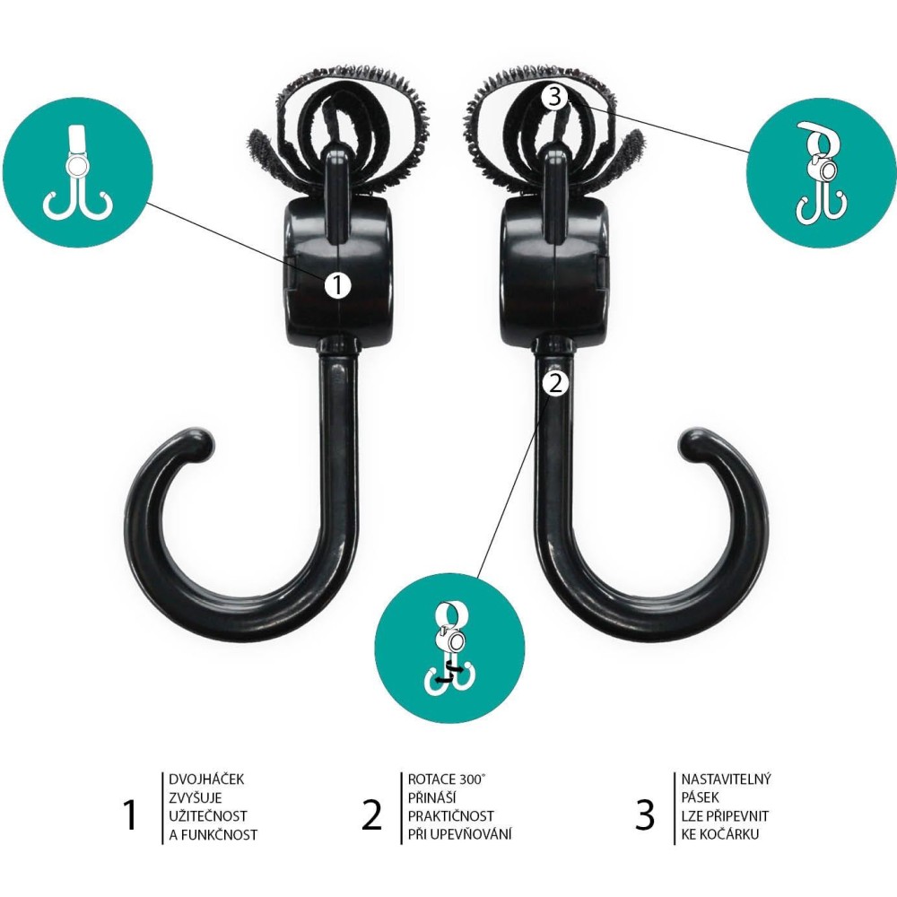ZOPA Dvojitý háček na kočárek 2 ks, Black Black