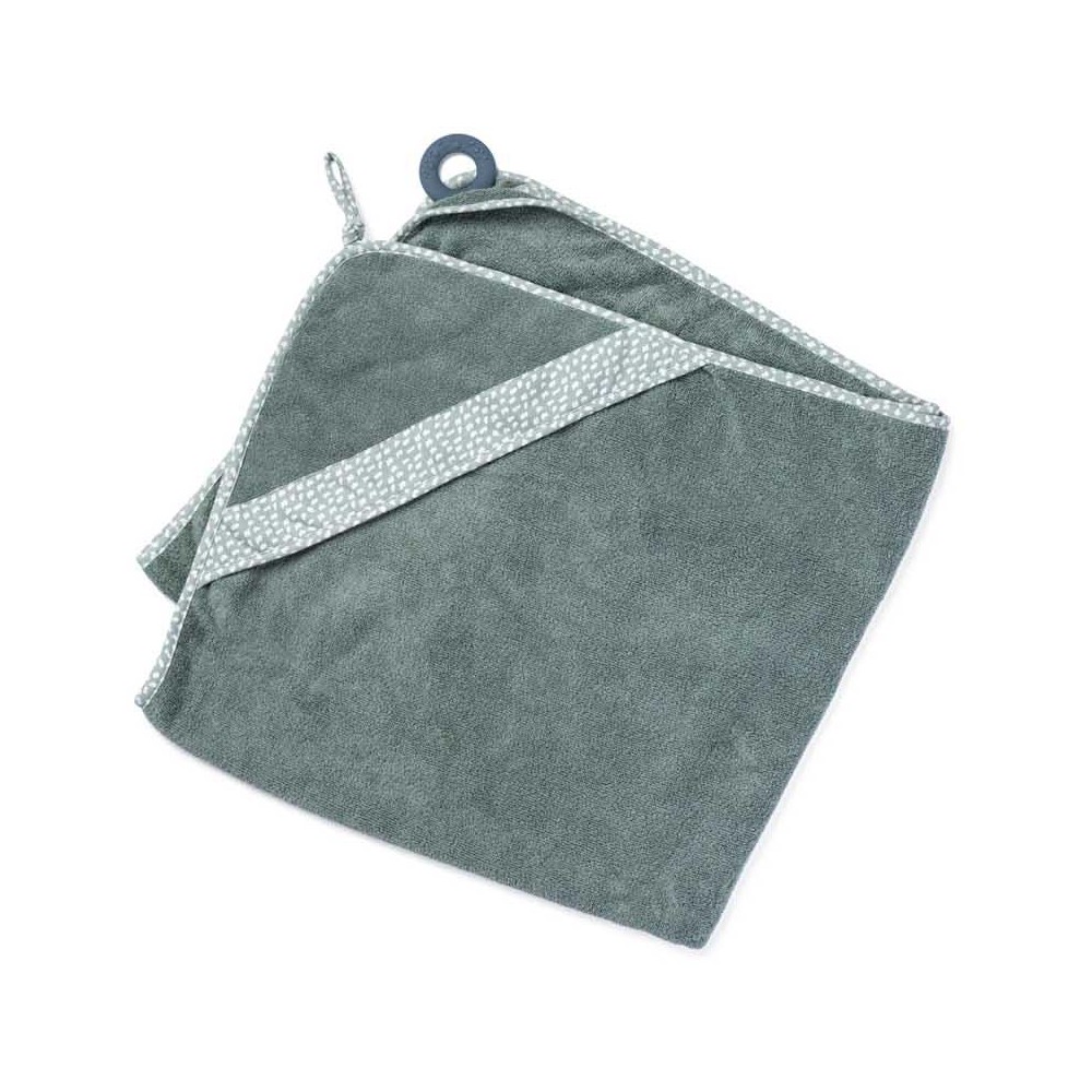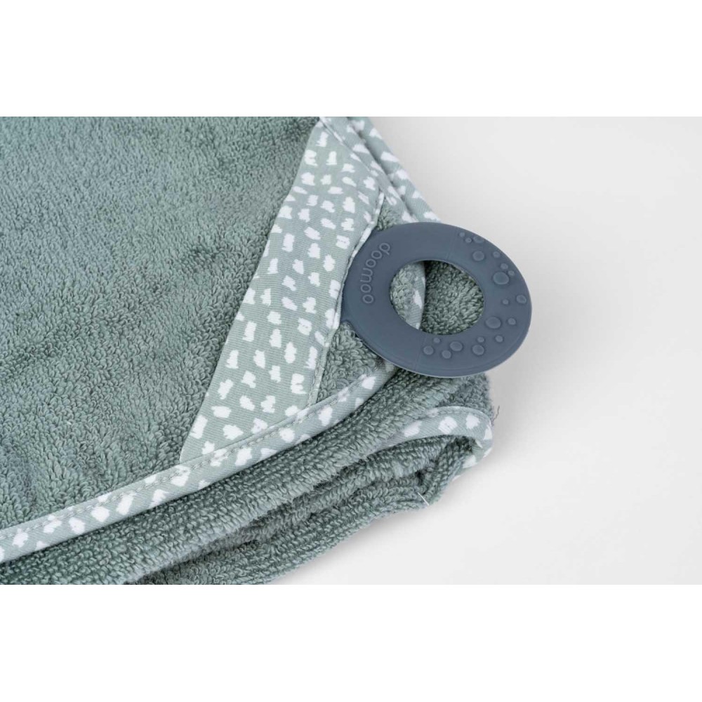 Heboučký ručník s kapucí Doomoo Dry&Play není jen tak obyčejný ručník. Díky vychytávce v podobě silikonového kolečka, si jej rodiče snadno připevní kolem krku na své tělo, získají tak volné ruce pro pohodlné a bezpečné umývání děťátka, a navíc jsou chráněni před cákanci. Po koupeli, děťátko ve své náruči pohodlně zabalí do ručníku a silikonové kolečko poslouží jako kousátko.