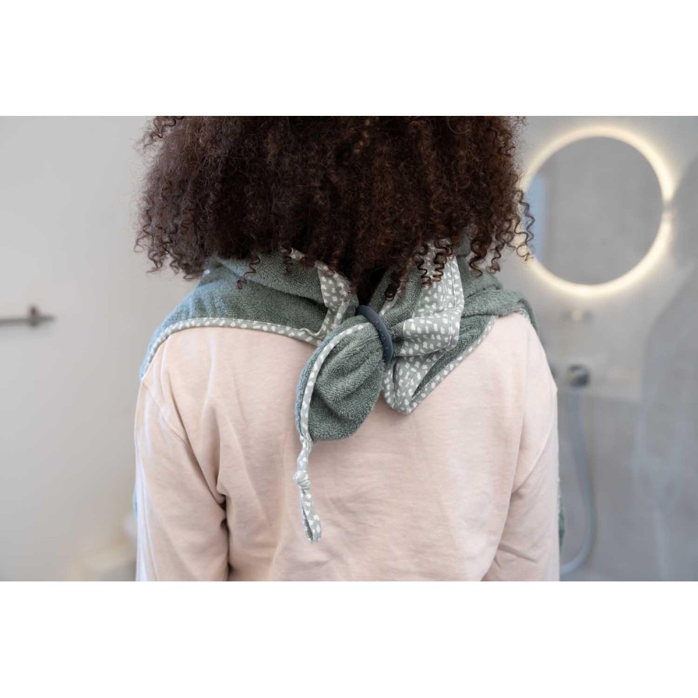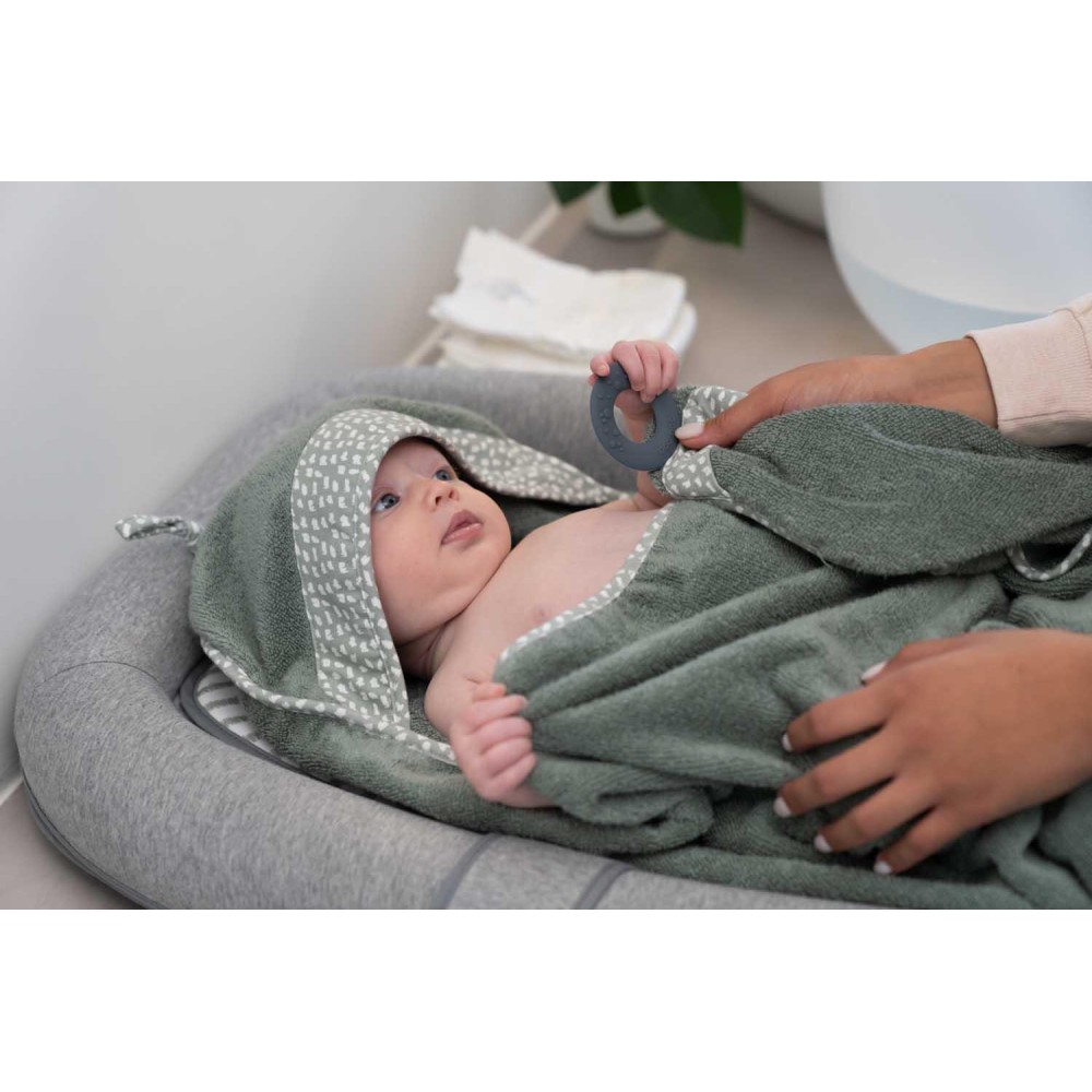 Ručník Doomoo Dry&Play je dostatečně velký, aby se do něj po koupeli zachumlaly i větší děti. Je vyroben z měkké organické bavlny a má certifikát OEKO-Tex.