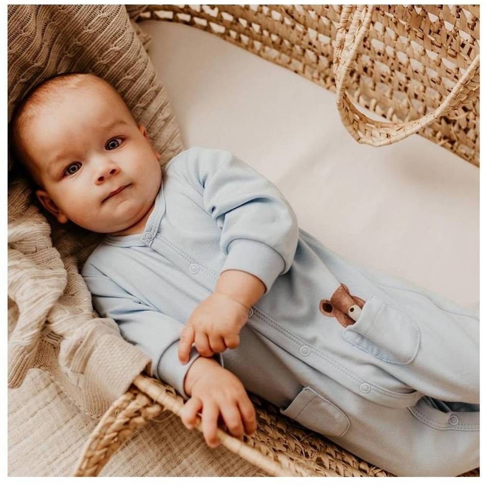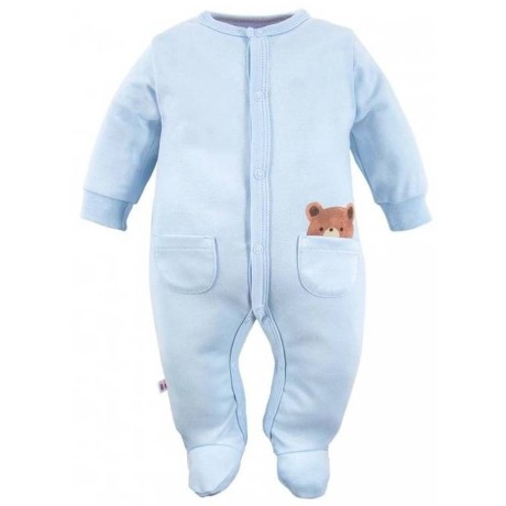 Dětský overal s nožičkami modrý s medvídkem. Overaly pro novorozence s nožičkami jsou nezbytnou součástí výbavy pro novorozence. Skvělé pro děti, které se v noci rády odkrývají během spánku. Rodiče nejčastěji volí overaly pro své nejmenší. Overaly pro novorozence jsou velmi pohodlné při oblékání, jak pro maminku, tak pro dítě.