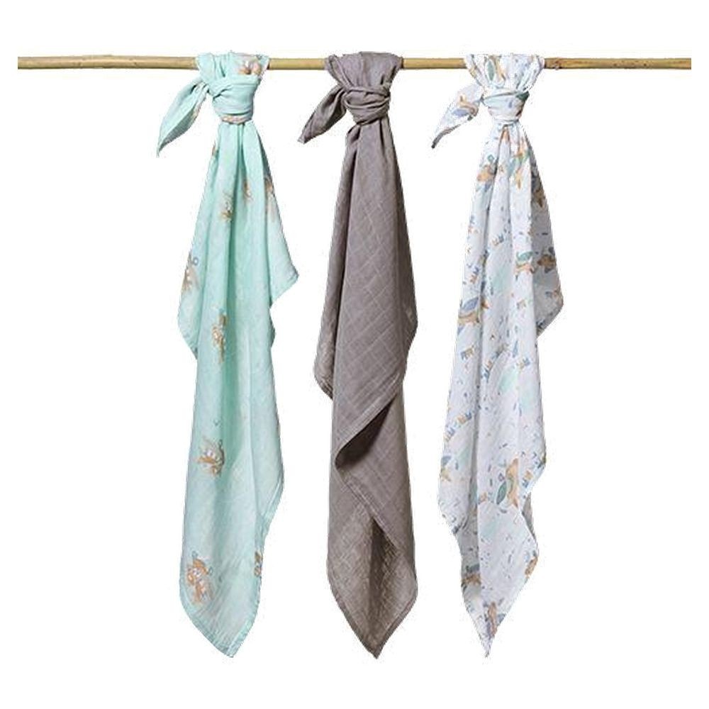 Bambusové dětské plenky 3 ks, Letadla - mátová/šedá