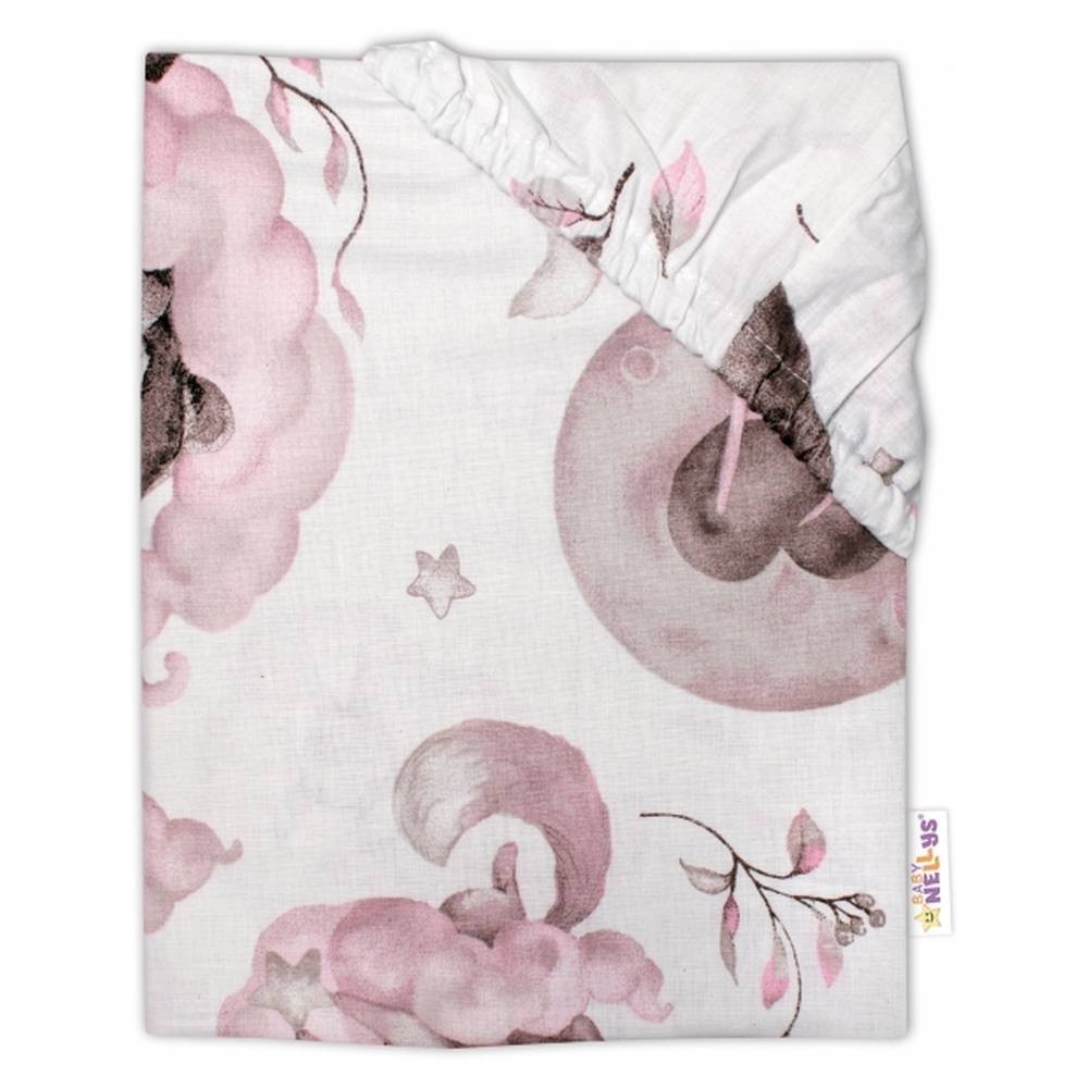 Dětské bavlněné prostěradlo do postýlky Baby Nellys, Zvířátka na mráčku, růžové