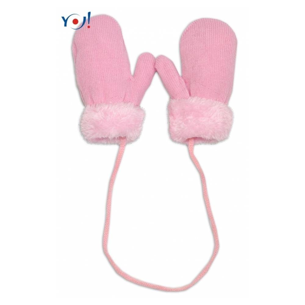 YO! Zimní kojenecké rukavičky s kožíškem - se šňůrkou YO - sv. růžové/růžový kožíšek