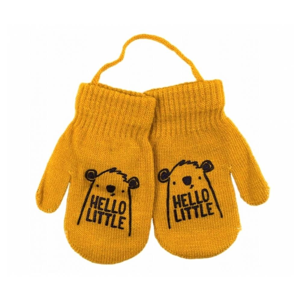 YO! Zimní chlapecké rukavičky se šňůrkou Hello Little - hořčicové