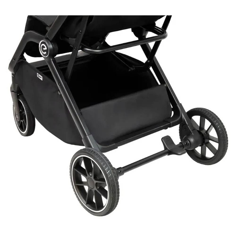 Díky bezúdržbovým kolům o průměru 16 cm vpředu a 20 cm vzadu zvládne Espiro Else jak městský chodník, tak i lehčí terén. Brzda Stop&Go je šetrná k botám a ovládá se intuitivně. Úložný prostor zahrnuje velký nákupní košík, zadní kapsu na stříšce a držák na lahev – všechny potřebné věci tak máte po ruce.