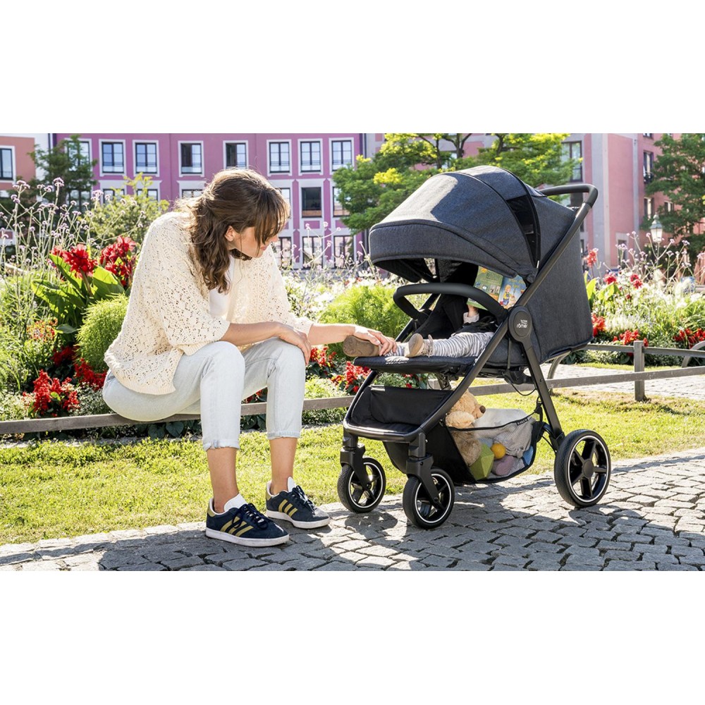 Kočárek nabízí měkké, polstrované sezení se snadno nastavitelnou zádovou opěrkou až do úplného lehu, a to jednou rukou. Jeho pohodlí zvyšují i měkce polstrované bezpečnostní pásy, které jdou snadno upravovat, i když dítě sedí v kočárku. Když svítí sluníčko, s velkou, prodloužitelnou stříškou s integrovanou sluneční clonou s ochranou UPF 50+ máte jistotu, že ho nebude pro vašeho malého cestovatele až moc. V horkých dnech děti navíc ocení i větrání. Ať už jedete na celodenní výlet, nebo jen na krátkou procházku, prostorný košík unese vše, co budete potřebovat – plenky navíc, náhradní oblečení, hračky či svačinu.
