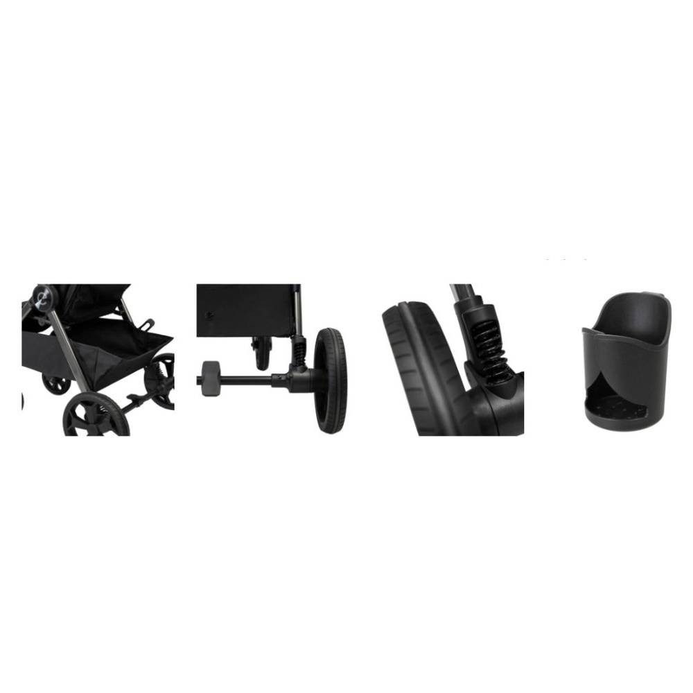 Lehký rám s anodovaným povrchem * Sportovní sedadlo * Bezúdržbová kola * Oboustranná vložka na sedadlo * Nánožník pro tepelný komfort * Držák na láhev * Prostorný nákupní košík * Madlo pro dítě z ekokůže