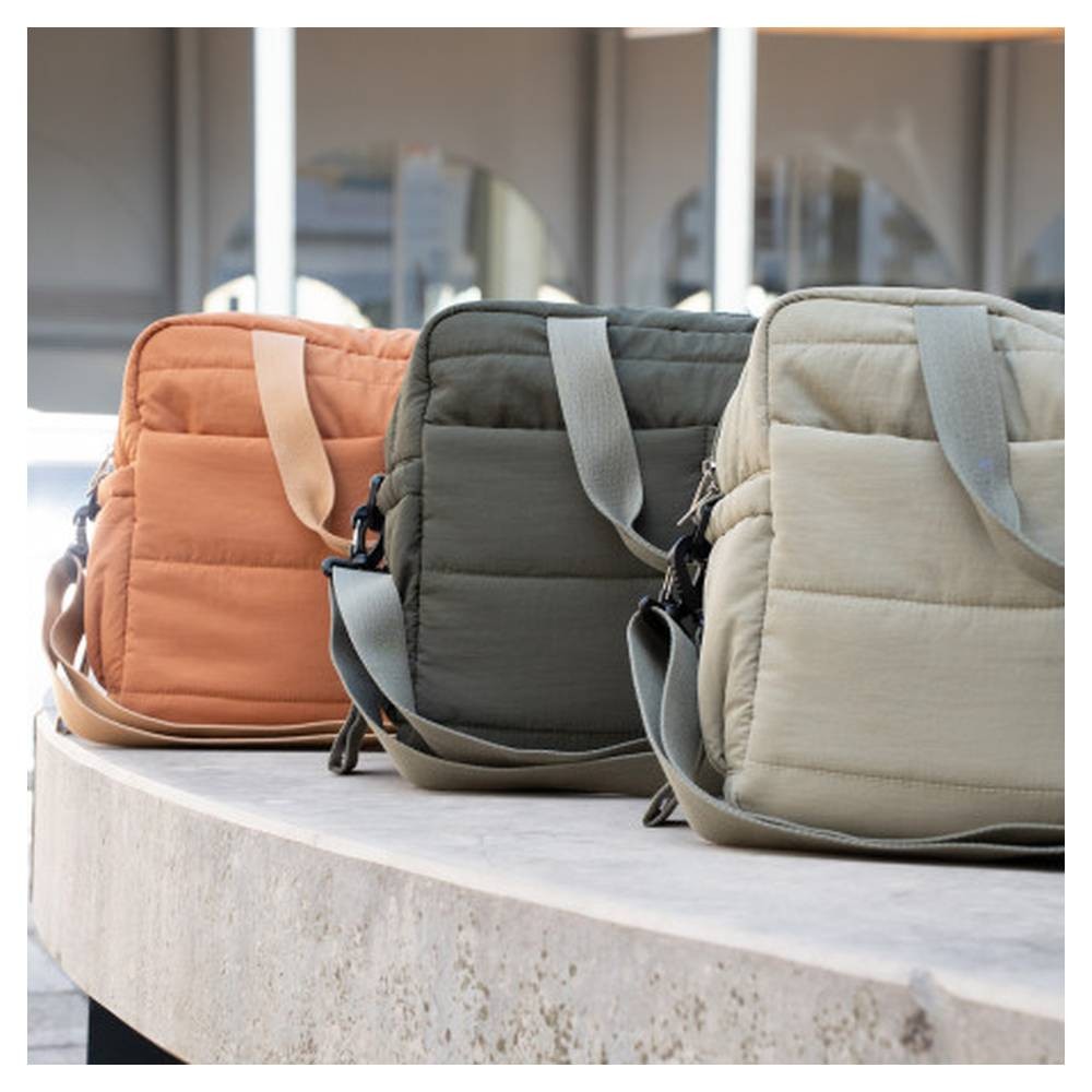 Univerzální a praktická taška, kterou můžete nosit třemi způsoby: přes rameno, v ruce nebo připevněnou na kočárku pomocí dvou popruhů. Prošívaný design dodává elegantní a módní vzhled, který se hodí ke každému outfitu.