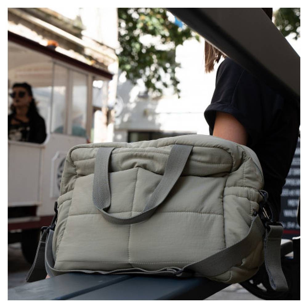 Univerzální a praktická taška, kterou můžete nosit třemi způsoby: přes rameno, v ruce nebo připevněnou na kočárku pomocí dvou popruhů. Prošívaný design dodává elegantní a módní vzhled, který se hodí ke každému outfitu.