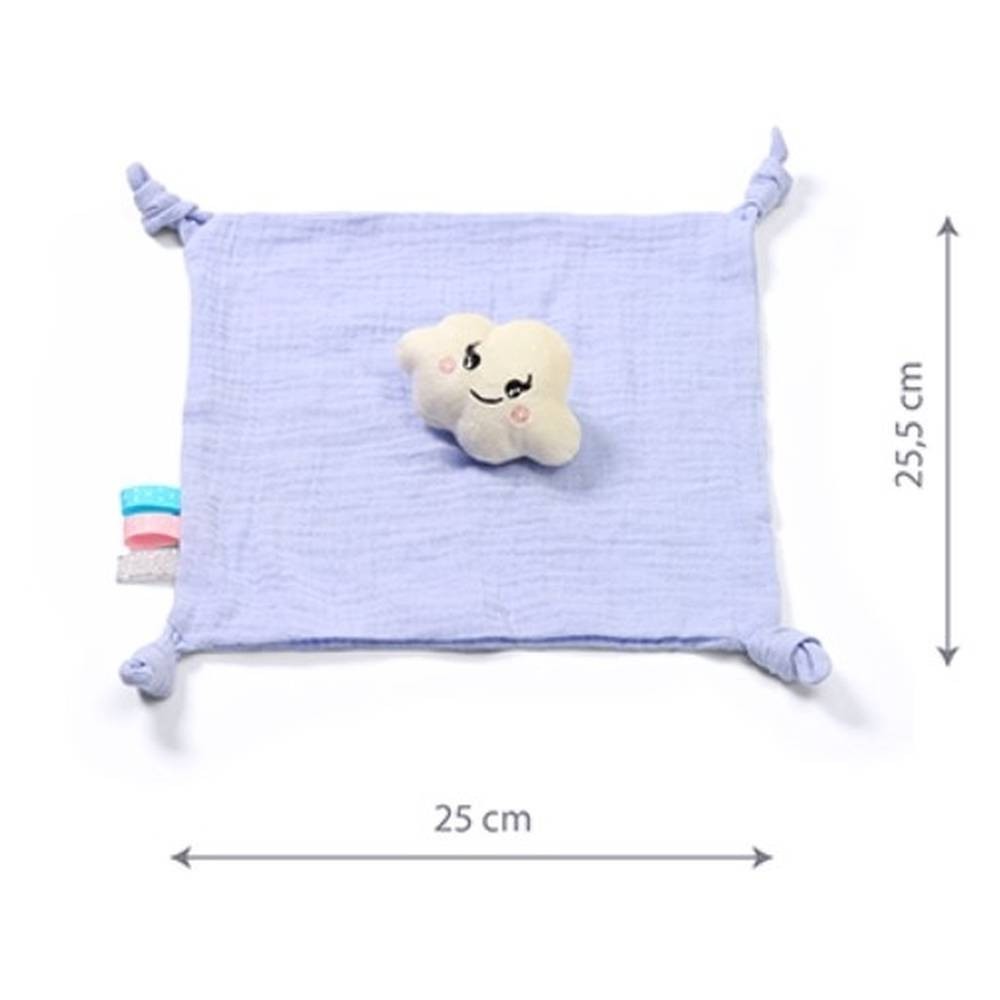 Blinky Cloud je produkt dva v jednom: deka a plyšová hračka ve tvaru obláčku. Je vyrobena z mušelínu - jednoho z nejjemnějších materiálů. Díky tomu je vhodný pro novorozence od prvních dnů života. Má vzdělávací a smyslové hodnoty. Uzly na rozích a štítky pomáhají rozvíjet obratnost. Detaily přitahují pozornost batolete. Mušelínová tkanina zajišťuje optimální proudění vzduchu.