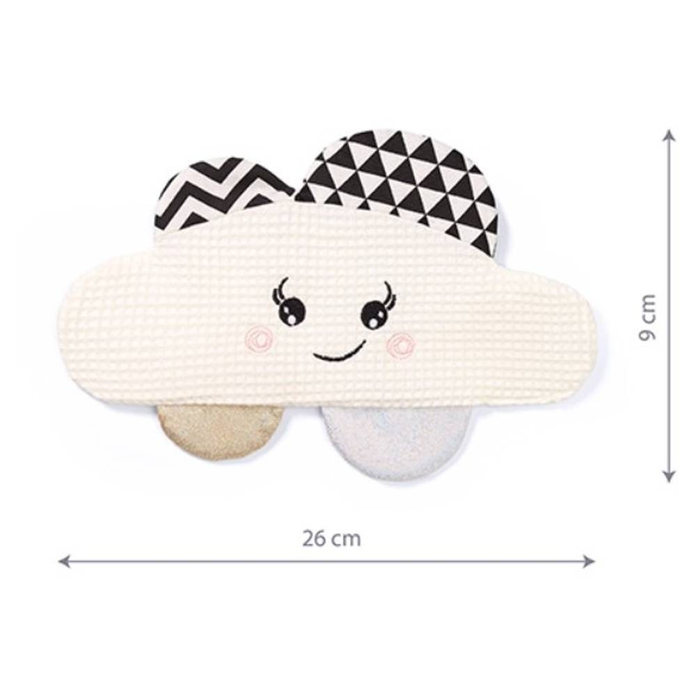 Šustík ve tvaru obláčku stimuluje rozvoj smyslů dítěte hrou. Tento mazlíček a hračka v jednom je vyroben z měkké bavlny. Uvnitř je šustící výplň. Šustění pomáhá procvičovat koordinaci různých smyslů. Podporuje kognitivní schopnosti kojence. Různé textury stimulují rozvoj hmatu. Kontrastní barvy a vzory stimulují smysl pro zrak a velké oči a příjemný úsměv podněcují mrak k aktivitě.