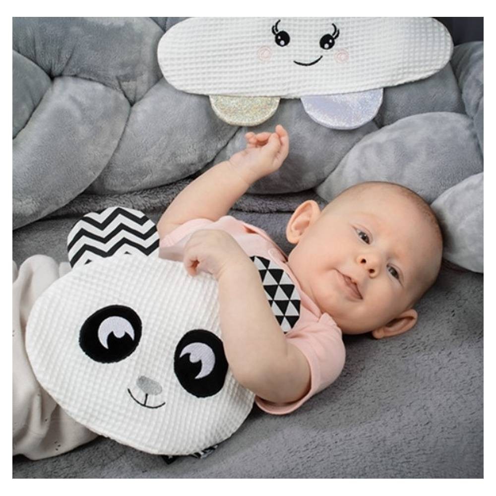 Šustící hračka je ideální způsob, jak formou hry stimulovat rozvoj dětských smyslů. Je to hračka a plyšák v jednom. Panda je vyrobena z měkké, jemné bavlny. Podporuje rozvoj kognitivních schopností vašeho dítěte. Vystupující prvky a různé textury stimulují rozvoj jemné motoriky. Šustění ovlivňuje smysl pro sluch. Kontrastní barvy a přátelská postava pandy stimulují smysl pro zrak.