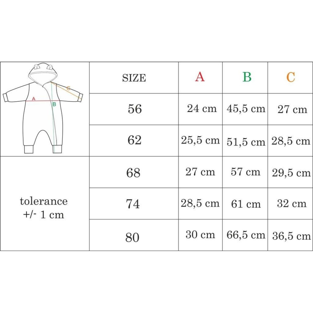 Roztomilý stylový a praktický zimní overálek s kapucí a oušky Nicol Lea pro miminka. Každé miminko v něm bude naprosto úchvatné a v pohodlí teploučka. Je vyrobený z kvalitní látky, která je velmi příjemná na dotek. Materiál si po dlouhou dobu zachovává svůj původní tvar. Overálek je podšitý z hřejivého materiálu tzv. Wellsoftu. Rukávky lze ohrnout a tím vynikne hřejivá podšívka. Boční zapínání po celé délce na zip usnadní oblékání. Složení: vrchní materiál: 95% bavlna, 5% elastan, podšívka 90% polyester, 10% bavlna- typ welsoft. Ideální pro miminka na zimu a podzim.